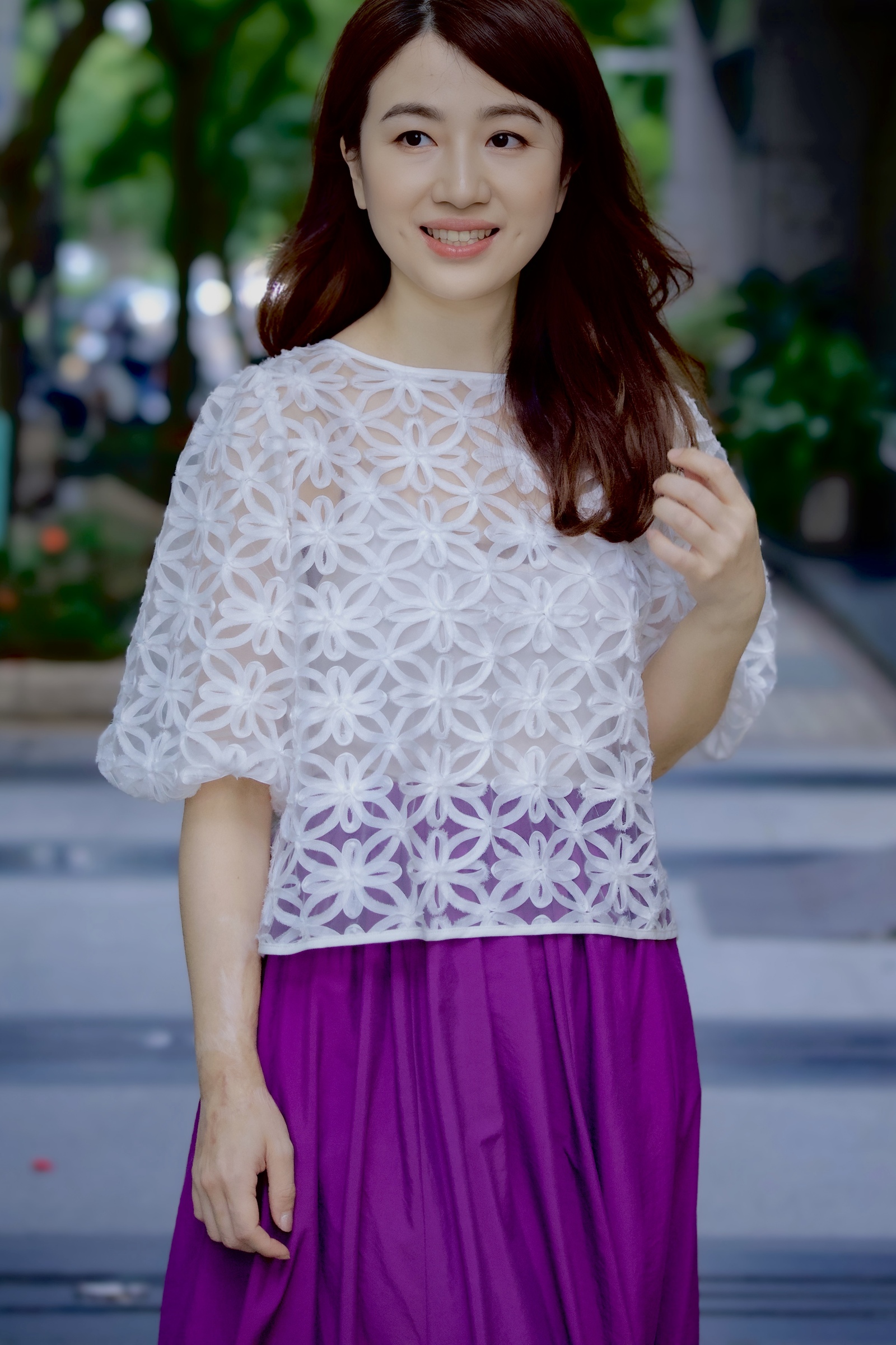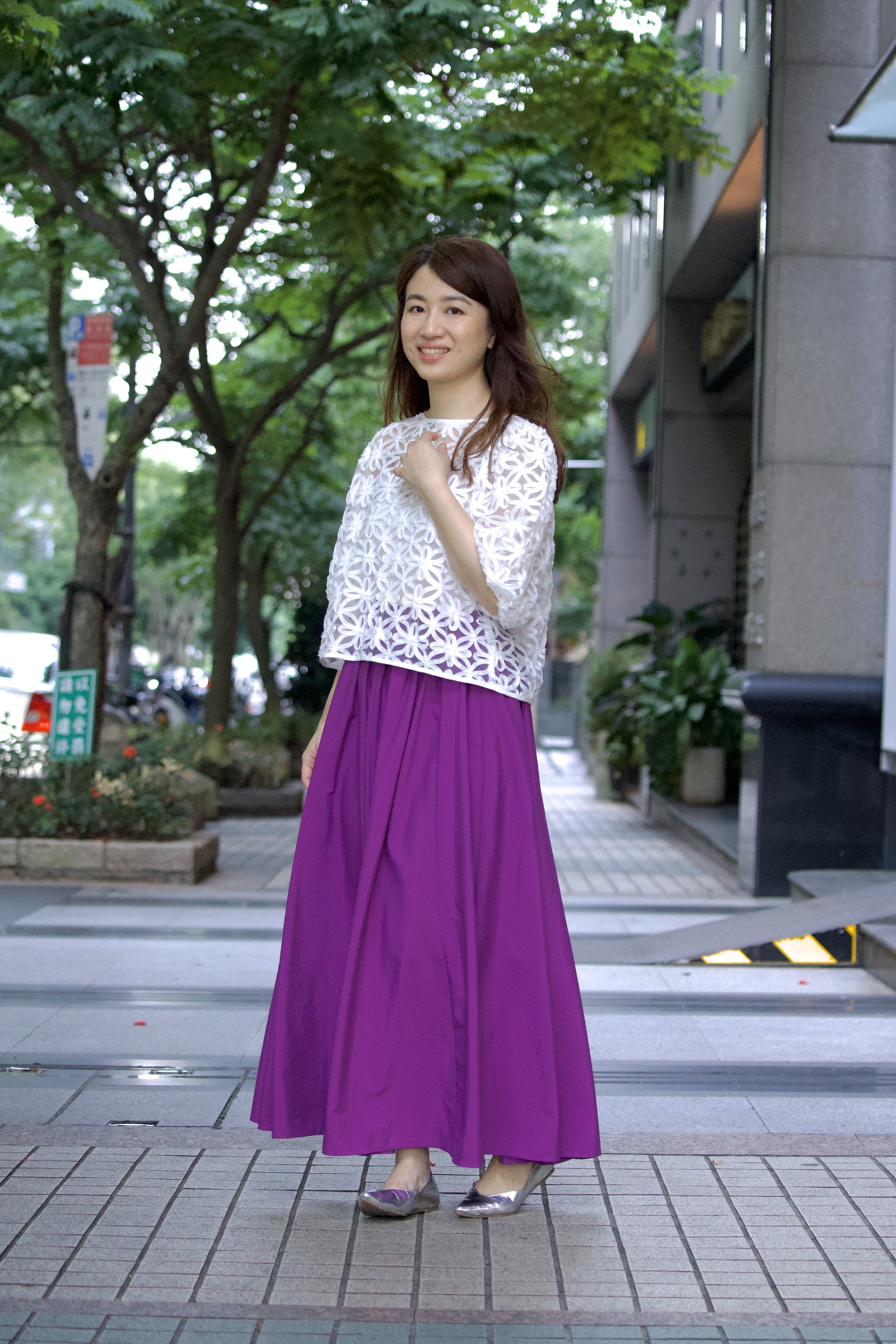 搭配簡約傘裙,呈現優雅的日系風格