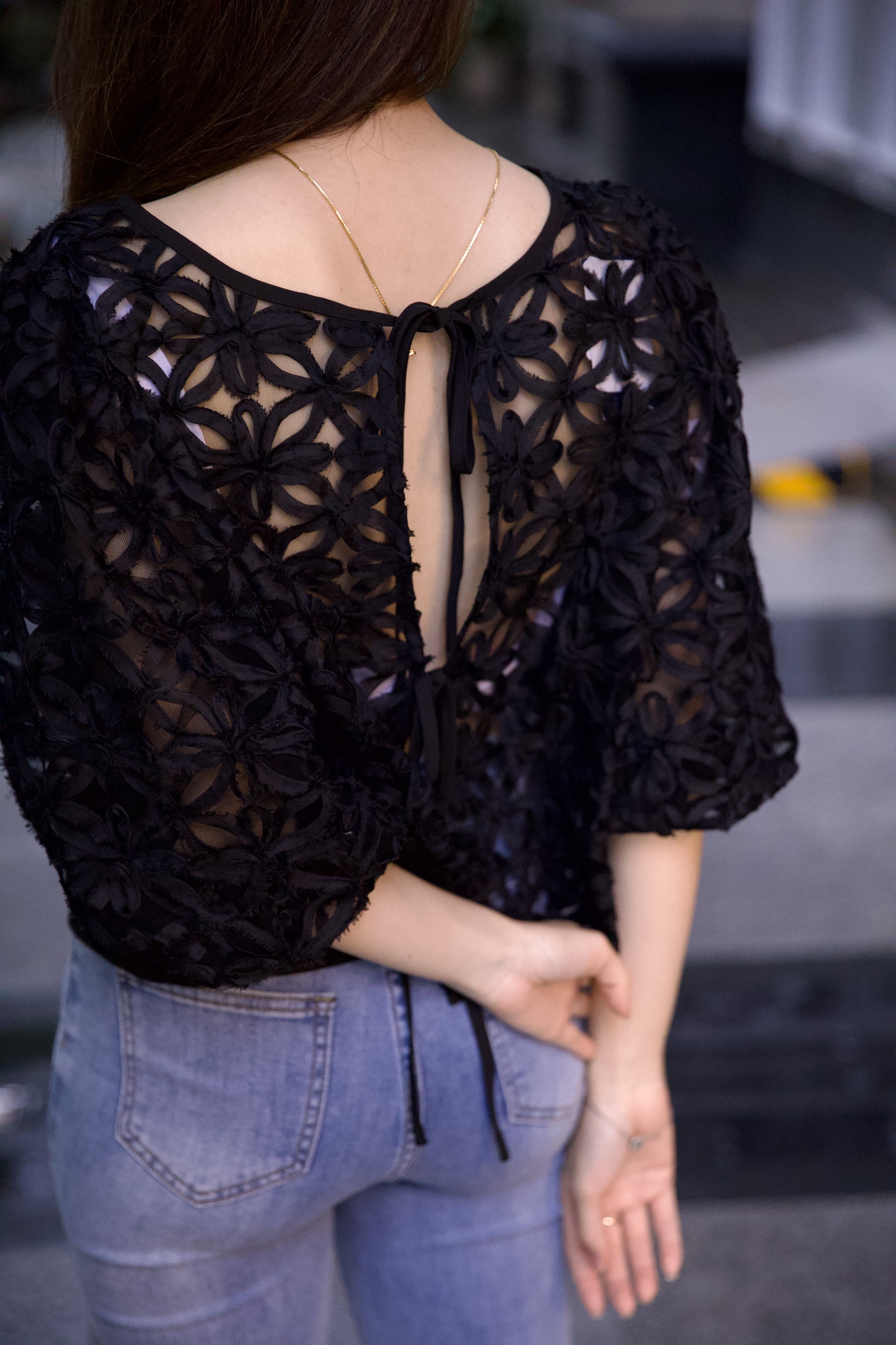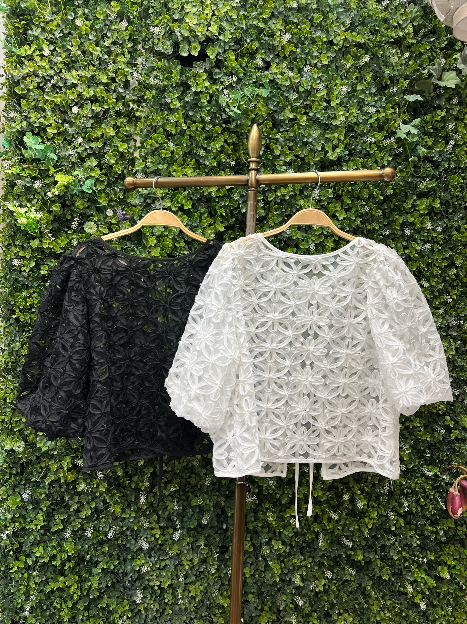 日本品牌 透視感蕾絲 2 Way 蝴蝶結上衣